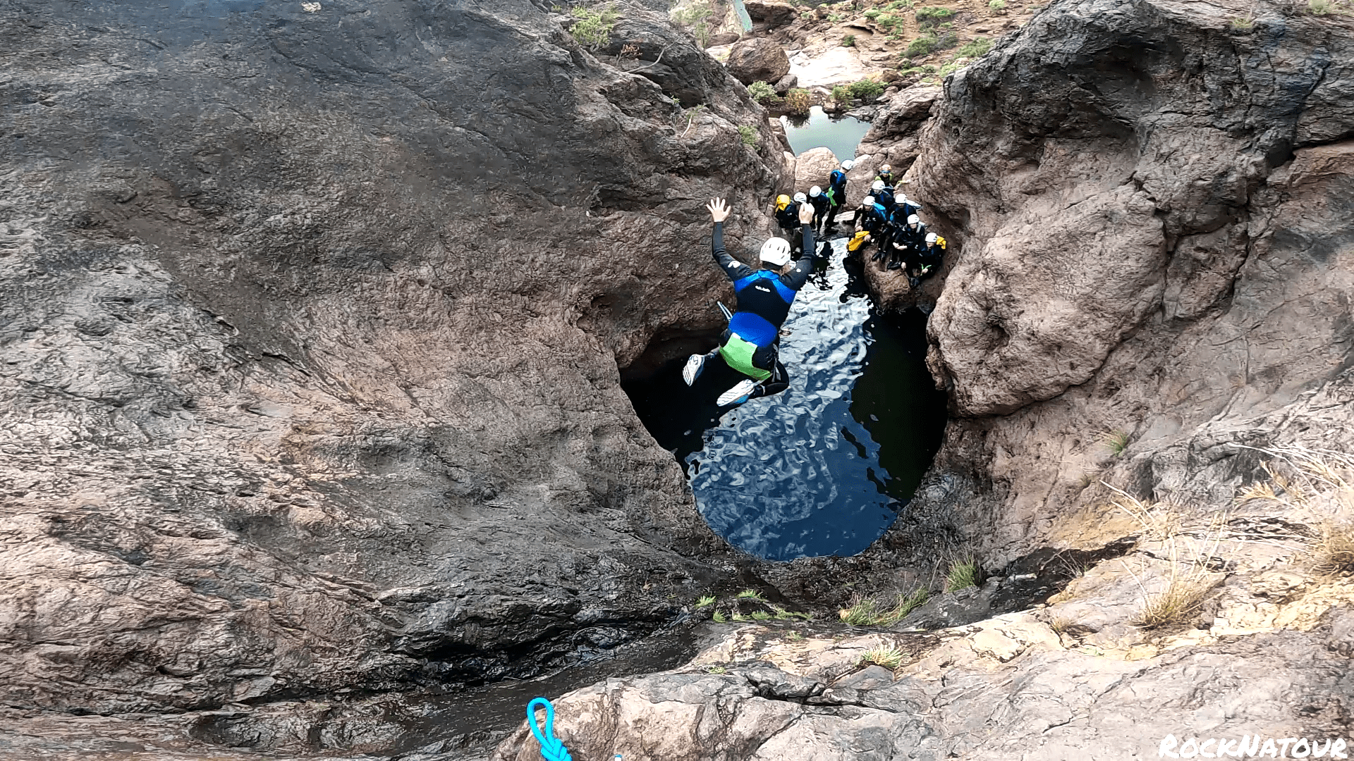 Nos reuniremos en el aparcamiento, donde recibirás todo el equipo. La aventura comienza con una caminata de 25 minutos por un sendero entre las montañas de colores de Veneguera. Desde esta posición elevada, podremos aprender sobre la geología de Gran Canaria y su historia. Después, llegaremos a la inicio del barranco, donde encontraremos las piscinas naturales. ¡Es hora del barranquismo!