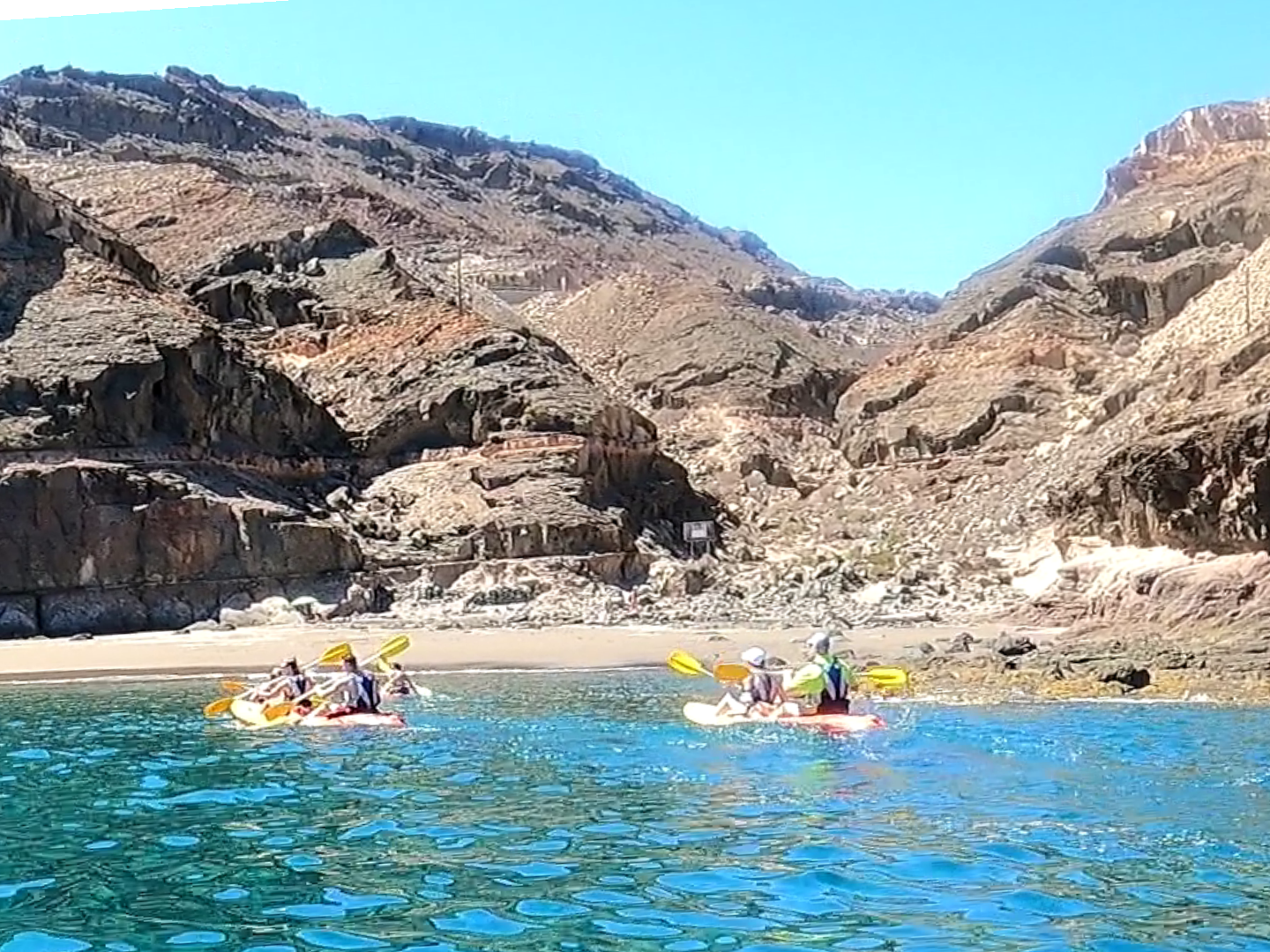 Come to discover the most awesome coast of Gran Canaria in a real adventure route across the sea. A kayak tour exploring caves, snorkeling (optional) jumping from cliffs (optional) and learning to play with the waves while you row a 2 seats kayak.