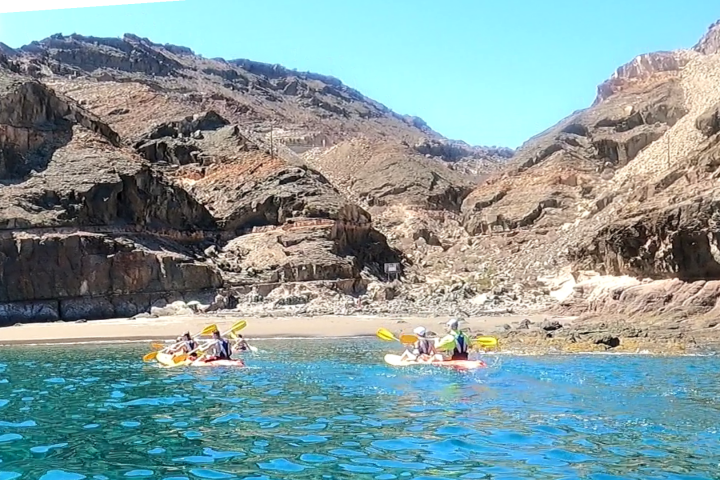 Come to discover the most awesome coast of Gran Canaria in a real adventure route across the sea. A kayak tour exploring caves, snorkeling (optional) jumping from cliffs (optional) and learning to play with the waves while you row a 2 seats kayak.